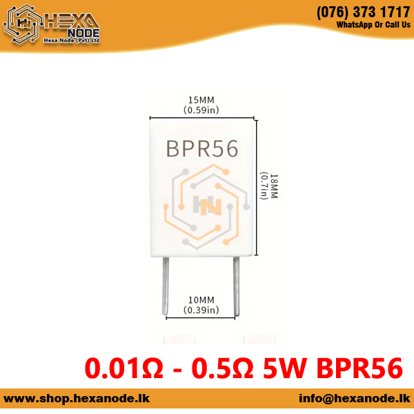 - 1 x 5W 0.01Ω – 0.5Ω 5W BPR56 Vertical Mounting Wire Wound Ceramic Non-Inductive Cement Resistor (Value as select)