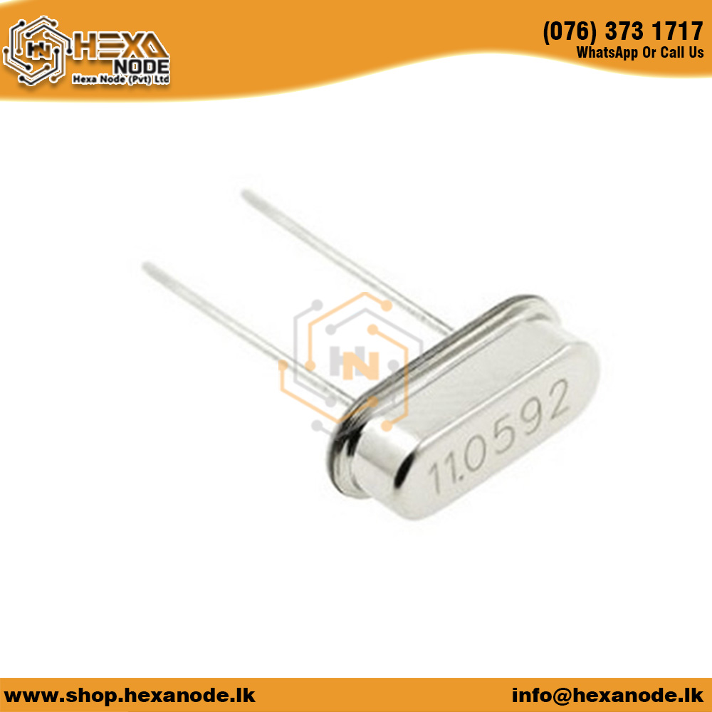 The 11.0592MHz Crystal 2 Pin THD is a high-frequency crystal oscillator designed to provide a precise and stable clock signal for electronic circuits. It features a 2-pin configuration and is mounted using a through-hole (THD) method, making it suitable for various applications requiring a reliable timing source. This crystal operates at a frequency of 11.0592 MHz, which is commonly used in microcontrollers, computers, and other digital systems where accurate timing is essential.