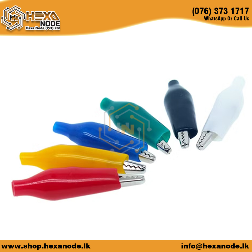 The 1 No’s Crocodile Clip Small Color is a compact, versatile clip used for making temporary electrical connections in a variety of electronic, automotive, and DIY projects. Made from high-quality metal with a durable, insulated color-coded handle, this crocodile clip is designed to provide a secure and stable connection to wires, components, or circuits. The small size makes it ideal for use in tight spaces, offering flexibility and precision. Available in multiple vibrant colors, it allows for easy identification and organization, making your projects more efficient and organized. Whether you’re working with breadboards, testing circuits, or connecting wires, this small crocodile clip offers a reliable and safe solution for your electrical connections.