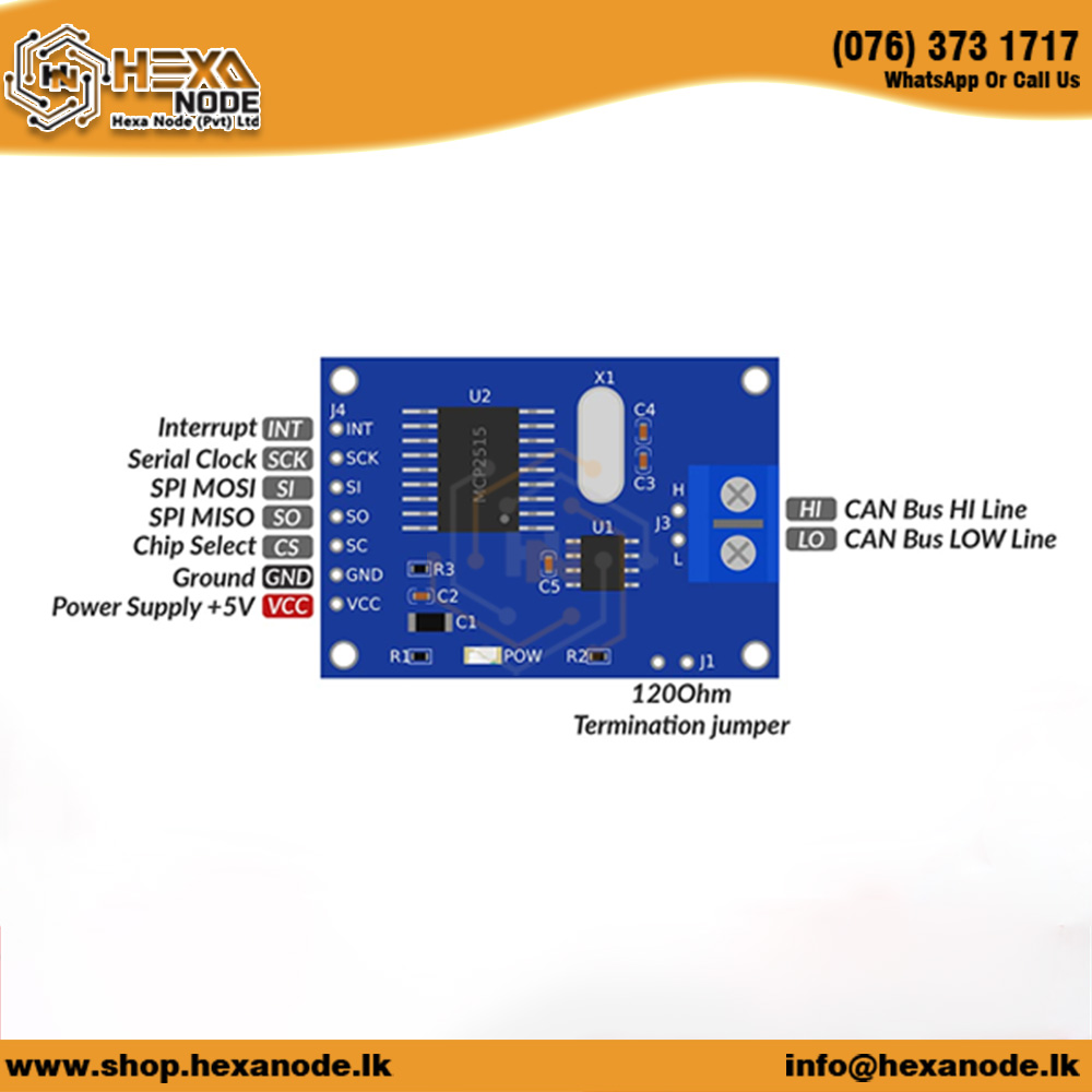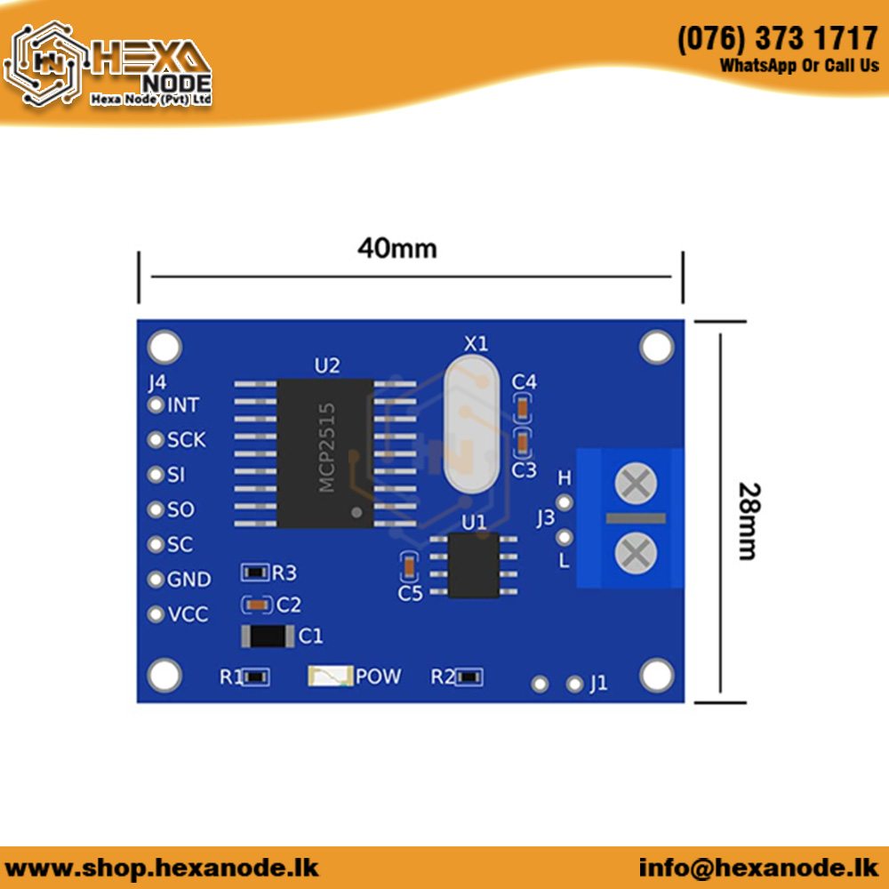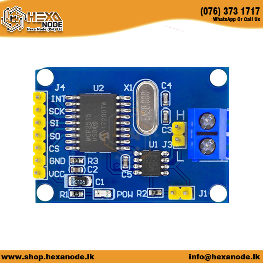 - MCP2515 CAN Controller: Based on the MCP2515 chip, which provides full CAN 2.0B support (both standard and extended frames).
