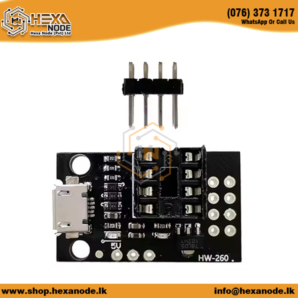 - Arduino IDE Compatibility: Fully compatible with the Arduino IDE, this board allows users to program the ATtiny85 with familiar software and libraries, making development faster and easier.
