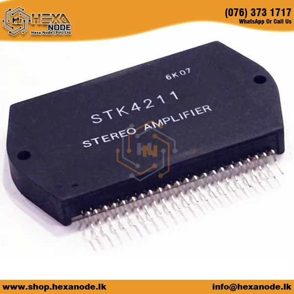 The STK4211V 2-Channel 70W Min AF Power Amplifier is a high-performance audio power amplifier designed for use in stereo audio systems and home theater applications. This amplifier features a split power supply design, ensuring stable and efficient operation with 70W minimum output power per channel, ideal for driving speakers in high-fidelity audio and multimedia systems. With its 2-channel configuration, it can drive two independent audio channels, making it a perfect solution for stereo sound amplification in home audio, public address systems, and consumer electronics. The STK4211V offers a combination of low distortion, high output power, and efficiency, ensuring clear and dynamic sound reproduction in both high-end and budget-conscious audio setups.