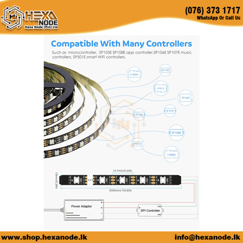 • Easy Integration: The WS2812 strip is compatible with popular development platforms like Arduino, Raspberry Pi, and other microcontrollers, making it easy to program and control.